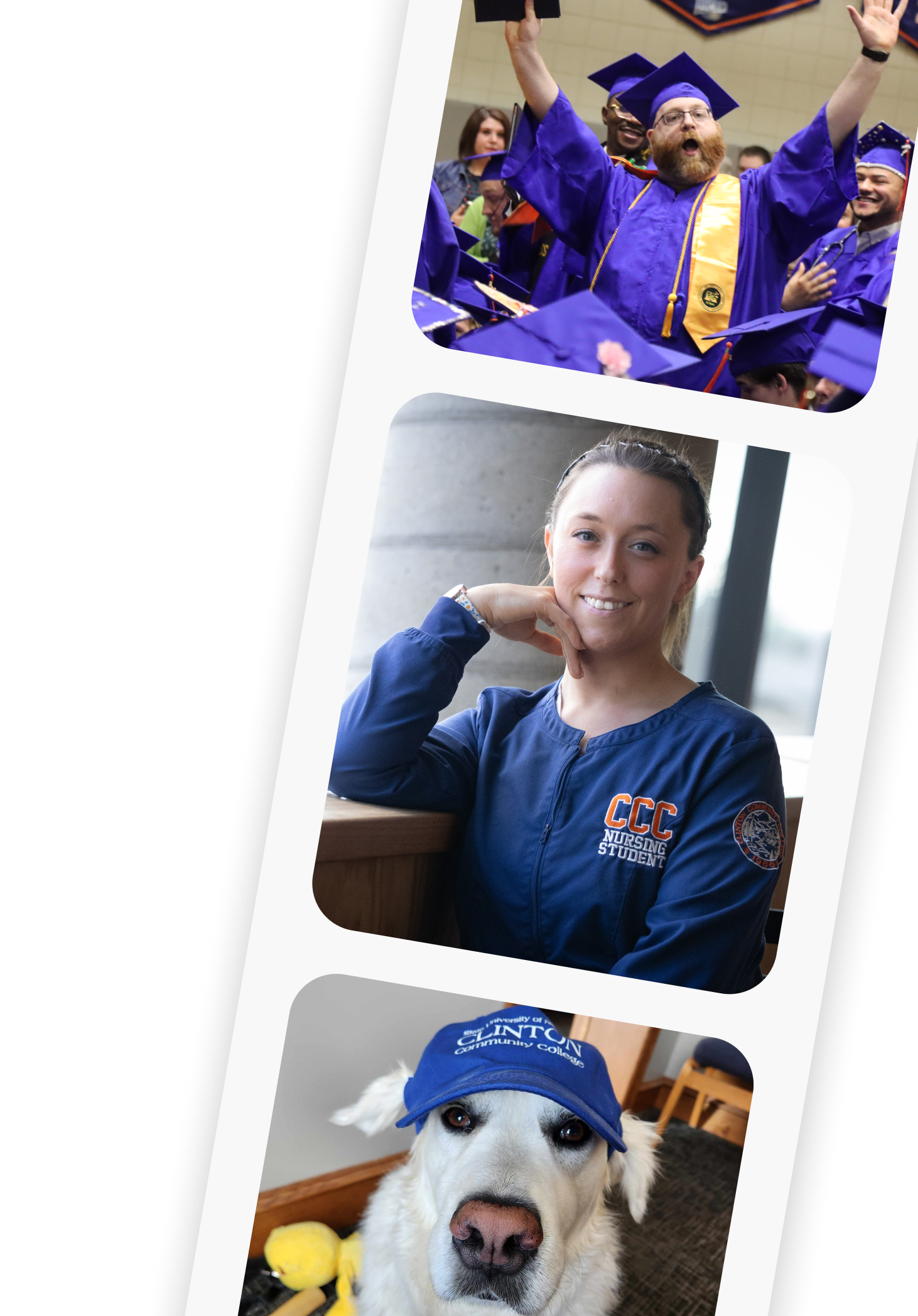 At Clinton Community College, you’ll benefit from a handcrafted education that includes faculty and staff available to help you every step of the way. Our diverse selection of degree programs are designed to prepare you for whatever comes next, whether that’s transferring to a four-year university or expanding your opportunities in the workforce. You will build a strong foundation in your chosen field, and enjoy the flexibility to select daytime, evening, or online classes to suit your schedule. We are here to provide the support you need to ensure you will thrive in college and long afterward. In fact, to get you off to a great start, we’re offering a free application!
